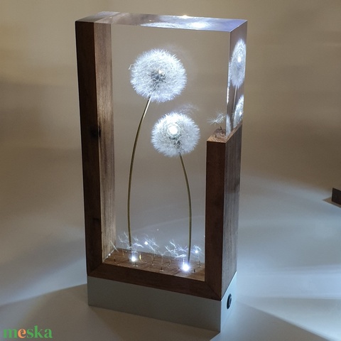Világító pitypang születésnapi ajándék - diófa és gyanta dísztárgy