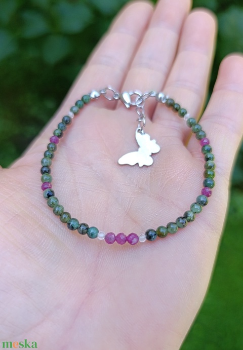 Smaragd, rubin és hegyikristály ásvány karkötő pillangó dísszel