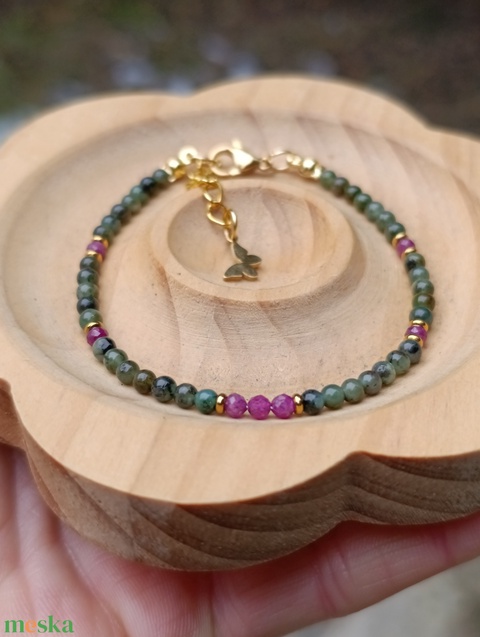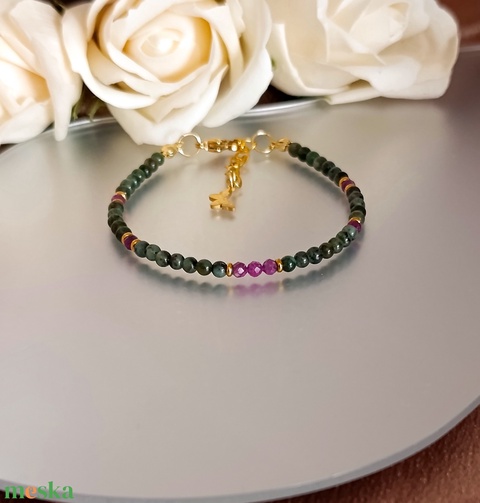 Smaragd és rubin ásványkarkötő pillangó dísszel