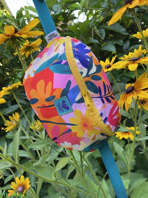 Virágmintás övtáska - sárga cipzárral/türkiz pánttal