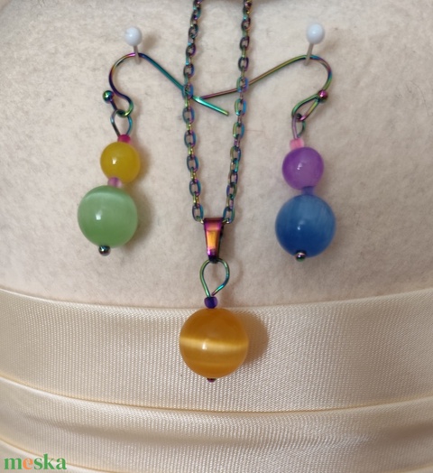Szivárvány-acél, kristálygyöngyök, bőr, hintázó fülbevalók, erő, szépség saját tervezésben