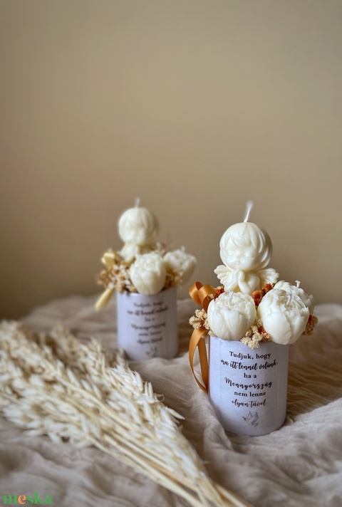 Gyertya virágbox (szójagyertyából), esküvői emlék gyertya - megemlékezés