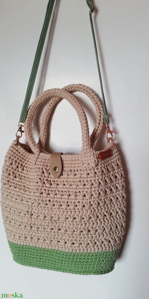 Horgolt kézitáska drapp