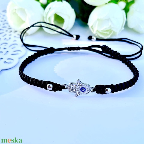 Hamsa és gonosz szem fonott fekete karkötő – kézzel készült