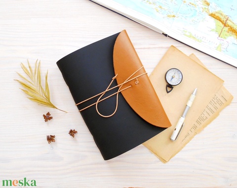 KALANDOR - Valódi bőr borítású kézműves napló A5 méretben - Iránytű motívummal