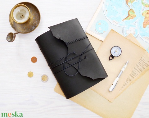 VIKING - Valódi bőr borítású kézműves napló A5 méretben - Vegvísir motívummal