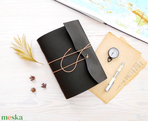 KALANDOR - Valódi bőr borítású kézműves napló A5 méretben - Iránytű motívummal
