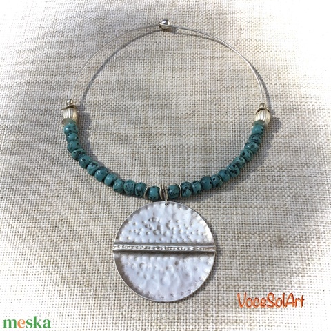 fém nyakpánt, ezüstözött réz, fém gyöngyök, kerámia gyöngyök