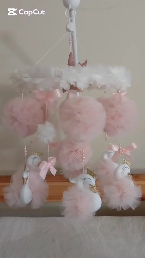 "Kicsi Hercegnő" csupa tüll, hattyús rózsaszín kiságyforgó kislánynak angol stílusú koronával