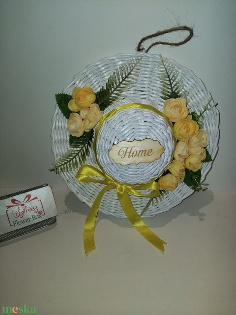 Fonott kalap ajtódísz sárga virággal- 25cm