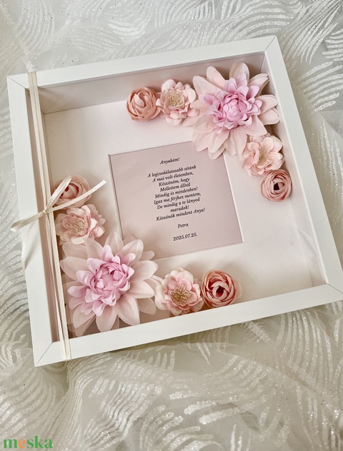 Szülőköszöntő virágos képkeret - RÓZSASZÍN ÁLOM - köszöntő üzenettel
