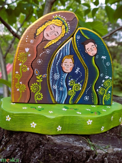 - Anyaga: vörösfenyő, akrilfesték, lakk