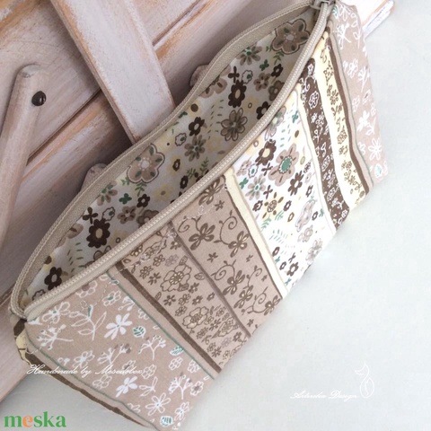 Natúr, bézs pasztell virágos tolltartó neszesszer vagy irattartó pénztárca - Artiroka design