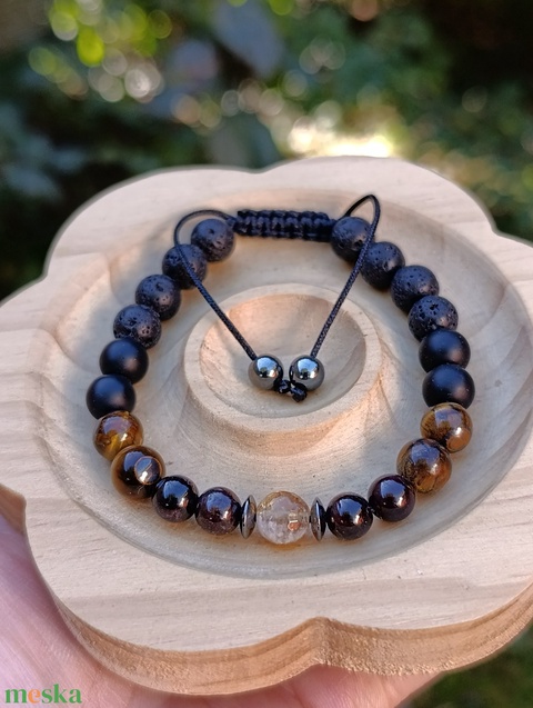 Férfi ásvány karkötő citrinnel, gránáttal, tigrisszemmel, ónixszal és lávakővel