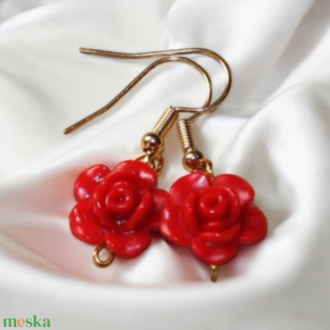piros rózsa fülbevaló