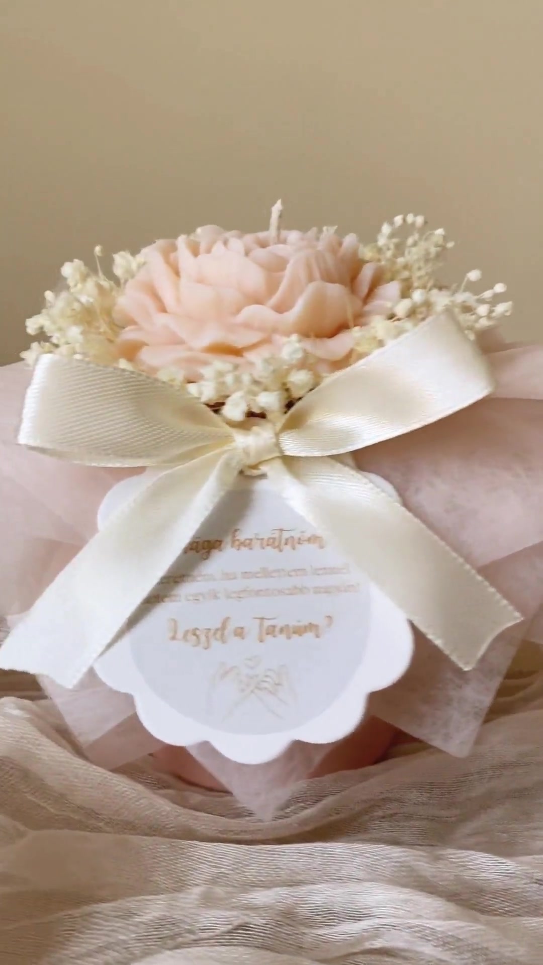 Gyertya virágbox (szójagyertyából) tanúfelkérő és koszorúslányfelkérő ajándék - kézműves ajándék