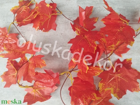 Juharleveles girland, narancs, őszi dekorációs selyem műnövény, 220cm
