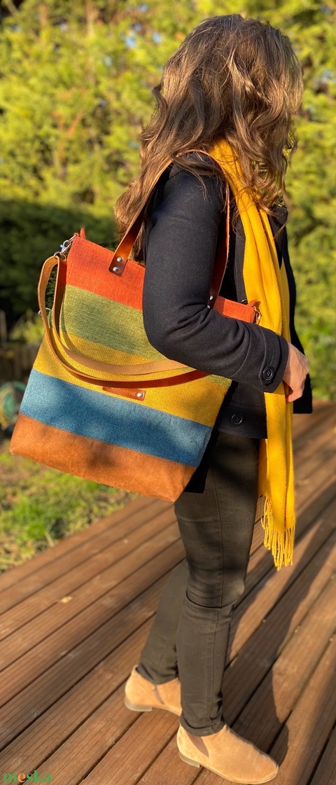 CAPENSIS kollekció - Variálható valódi bőr pántos színes szövettáska
