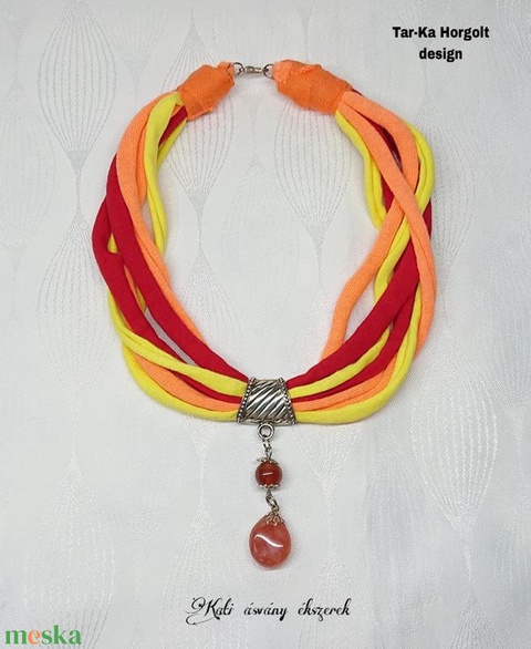 Pólófonalból készült nyaklánc karneollal