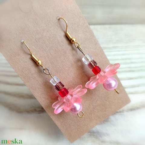 Rózsaszín virágos lógós fülbevaló