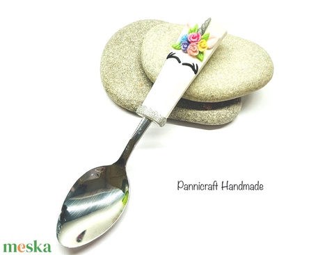 Névreszóló unikornisos gyerekkanál – kézzel díszített sütőgyurmával, ajándék kislányoknak