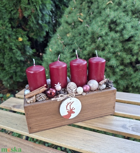 Karácsonyvárás- gyertyák faládikában, asztaldísz, vintage dekoráció, Azonnal vihető!