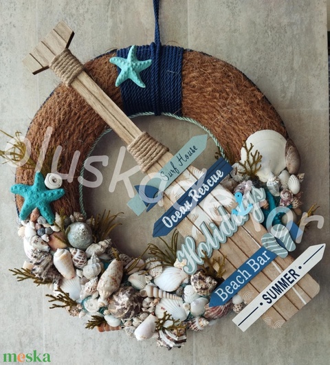 Evezőlapát, kagyló, csiga, tenger, nyári ajtó vagy falidísz, 42/55cm