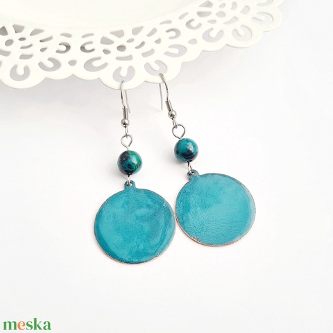 Tűzzománc kerek türkiz fülbevaló krizokollával