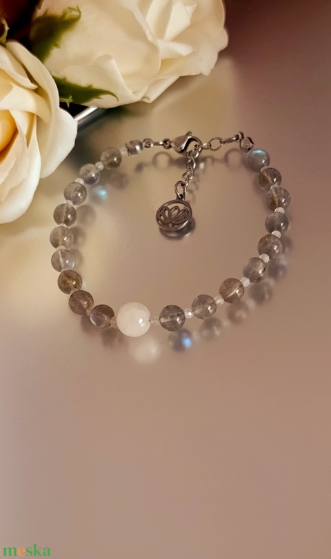 - Anyag/Összetevő acélsodrony, labradorit, hegyikristály, szivárvány holdkő