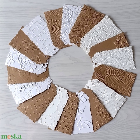 Dombornyomott, rusztikus hangulatú üres címke, esküvői ültetőkártya, ajándék címke, felköthető