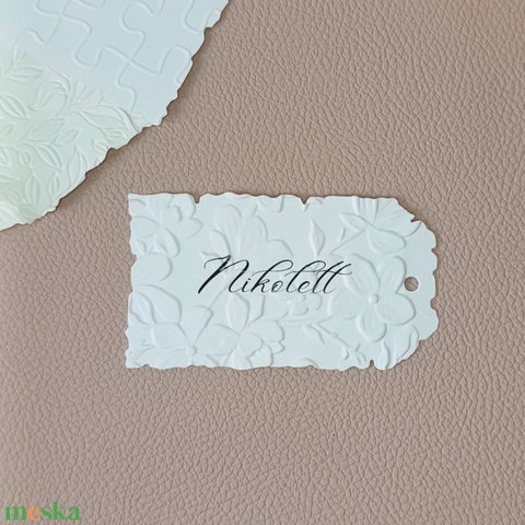 Virág mintás, rusztikus hangulatú esküvői ültetőkártya, ajándék címke, felköthető, szalagozható