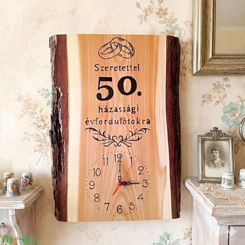 Egyedi Falióra 50. Házassági Évfordulóra – Rusztikus Fa Emlékajándék