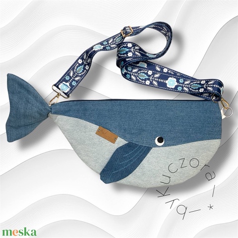 Bálna formájú övtáska, testtáska farmer anyagból
