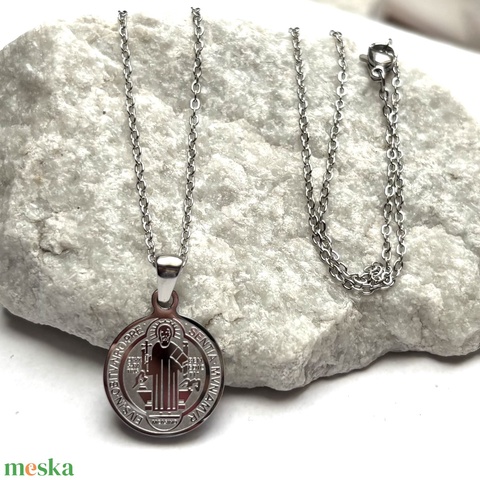 Kétoldalas nemesacél Szent Benedek medál nemesacél láncon 5601988