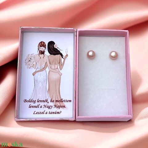 Tanú felkérő ajándék sterling ezüst valódi gyöngy fülbevaló díszdobozban 5602014