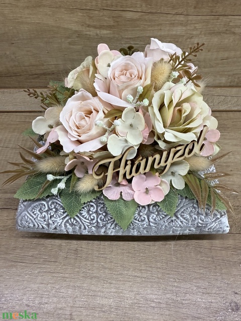 Sírdísz rózsaszín rózsákkal