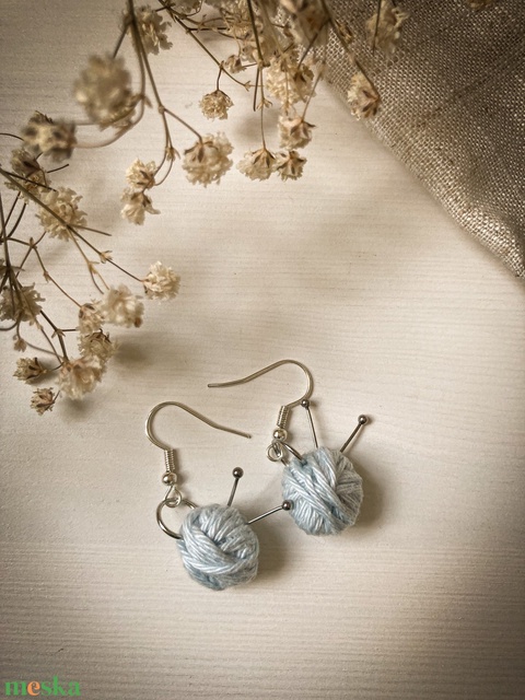 Lógós fülbevaló - Világoskék gombolyag fülbevaló