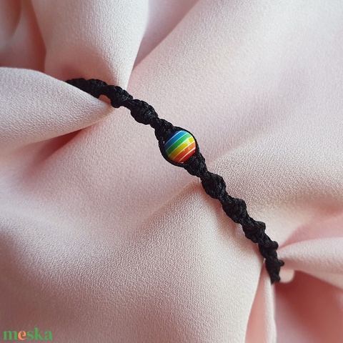 Fonott makramé karkötő - fekete, szivárvány gyönggyel
