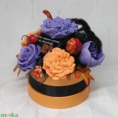 Halloween-i narancssárga - lila - fekete szappanvirág csokor