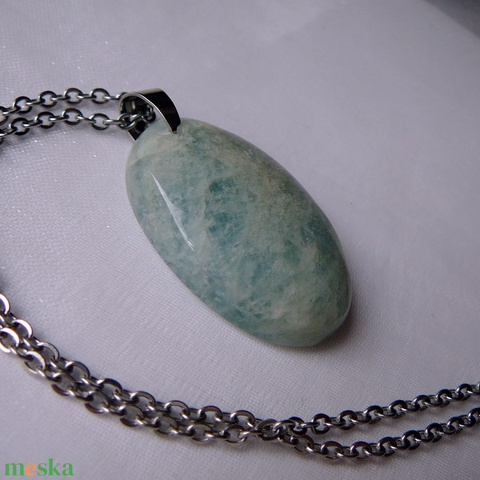 Orvosi acél szerelékre akasztottam ezt a különlegesen szép akvamarin medált.
