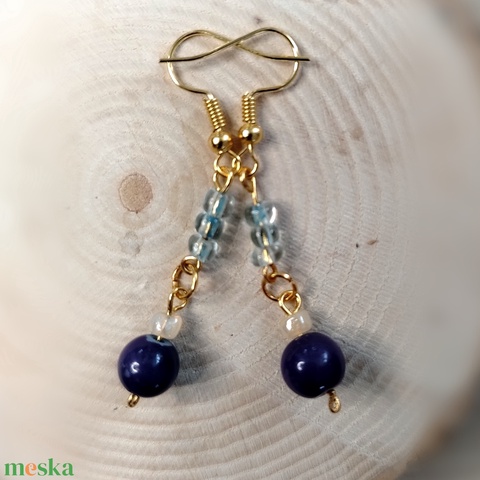 Kék arany Gyöngyös kézműves fülbevaló