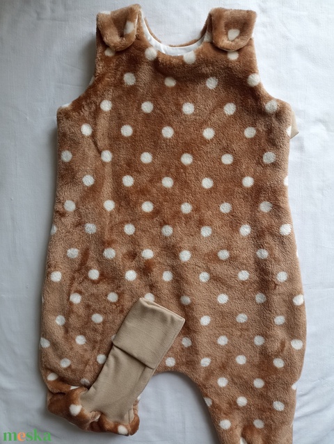 80-86-92-es őszi téli tipegő hálózsák wellsoft + pamut barna pöttyös