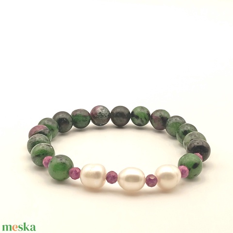 Zoizit-rubin - Rubin - tenyésztett gyöngy karkötő