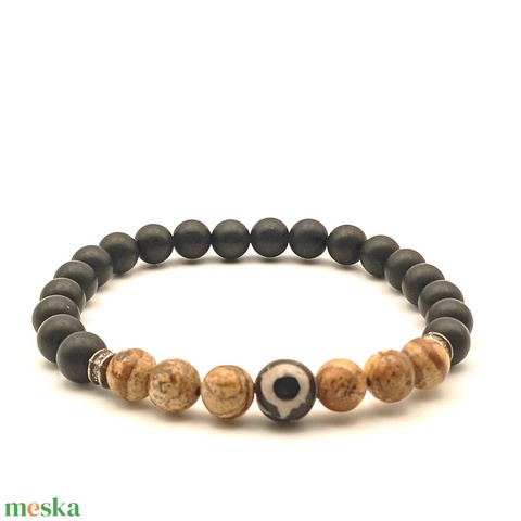 Tájképjáspis - Ónix - Dzi szemes férfi karkötő