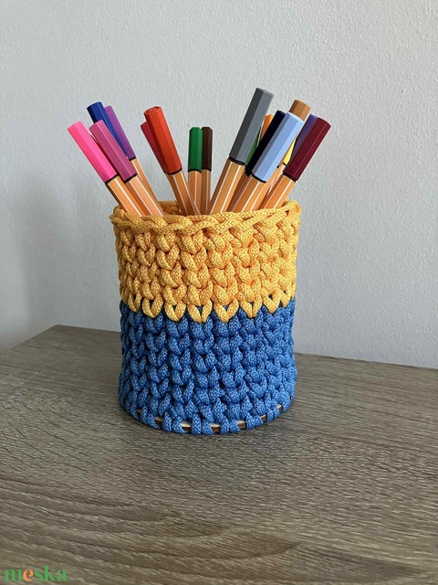Horgolt ceruzatartó (kék-sárga)