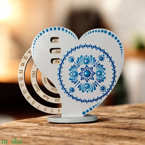 Szív alakú mini öröknaptár - kék-fehér