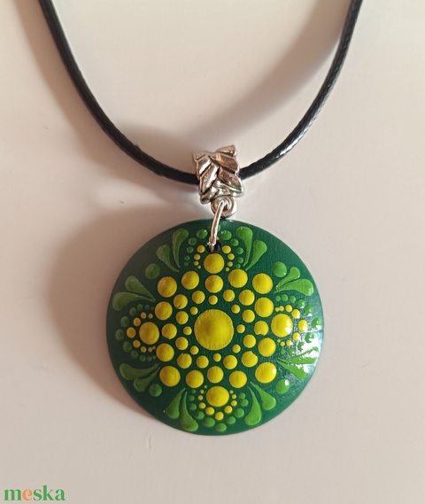 "Zöld-lime" pontozott mandalás nyaklánc