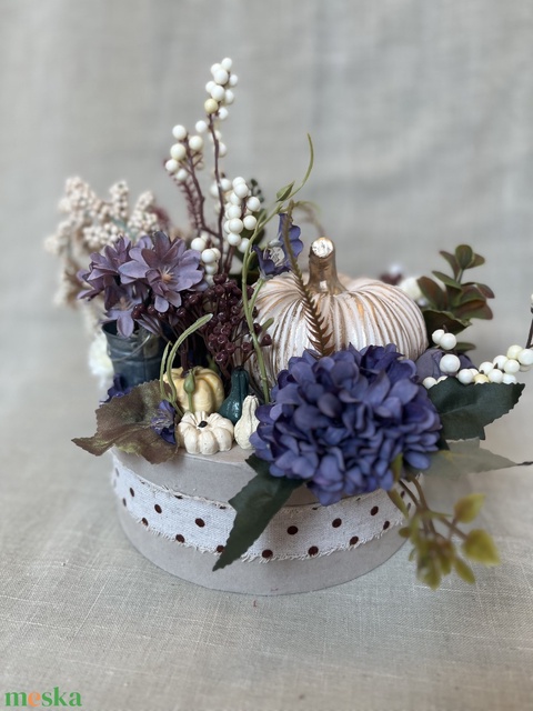 őszi asztaldísz lila - bézs [tök, krizantém, hortenzia]