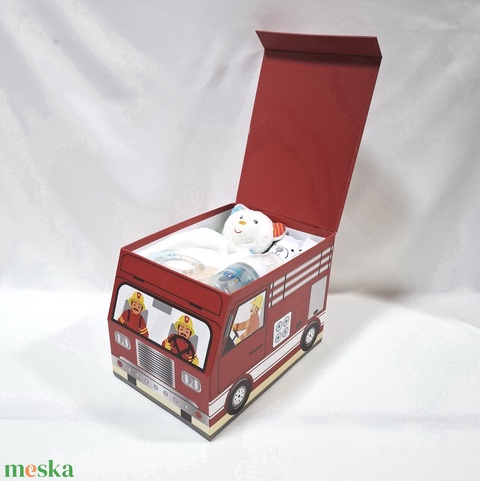 Tűzoltóautó mackó pelenkatorta , 3-6 kg pelenkatorony, babaváró csomag, kelengye