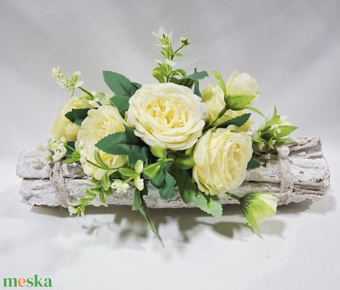Színes virágos kéreg fahasáb, dekoráció, asztaldísz, ablakdísz